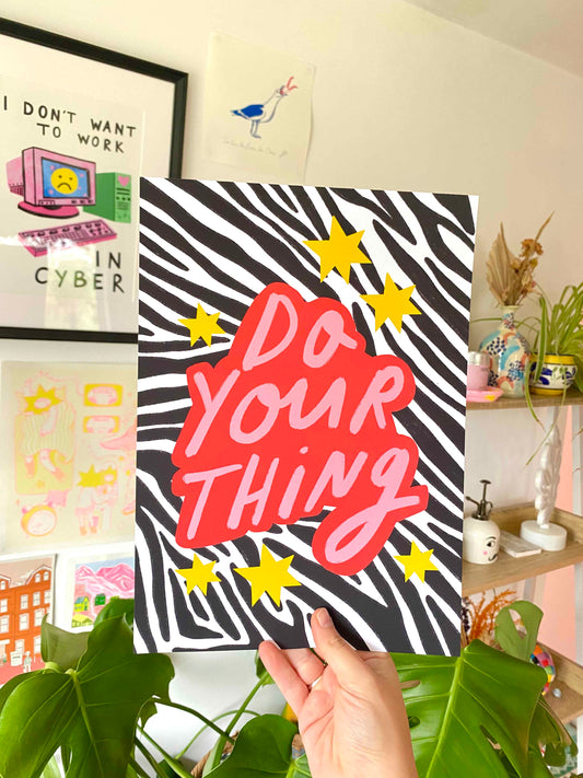 Do your thing! Zebra pattern Positive Quote Art Print | Quirky Slogan Animal Print Wall Decor