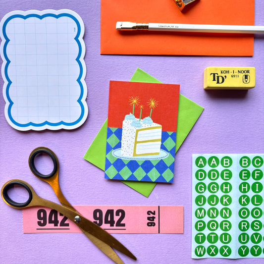 Mini Cake Slice Birthday Card | Retro Birthday Cake Birthday Card | Mini Colourful Birthday Card