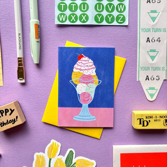 Mini Vintage Ice cream Sundae Birthday Card | Retro Ice cream Sundae Birthday Card | Mini Colourful Birthday Card