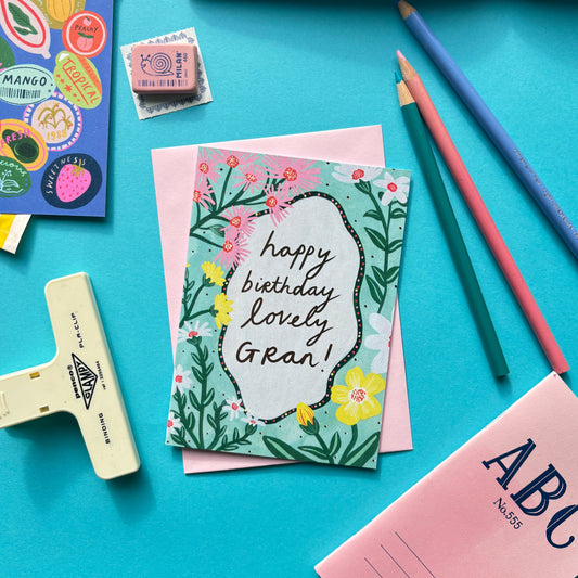 Happy Birthday Lovely Gran Greetings Card | Family Thoughtful Floral Gold Foil | Mother Grandmother Granny Nanny