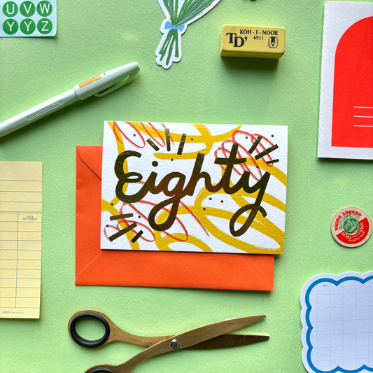 80th Birthday Card | Abstract birthday card | 80th birthday Gold Foil Milestone