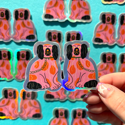 Staffordshire Dog Ornament Pink Holographic Vinyl Sticker