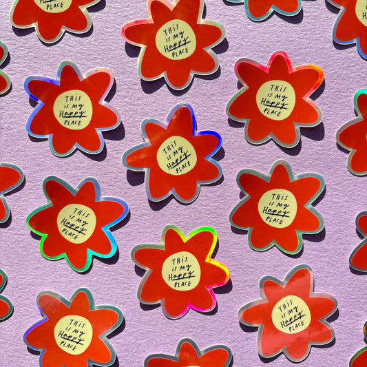 This Is My Happy Place red flower Holographic Vinyl Sticker