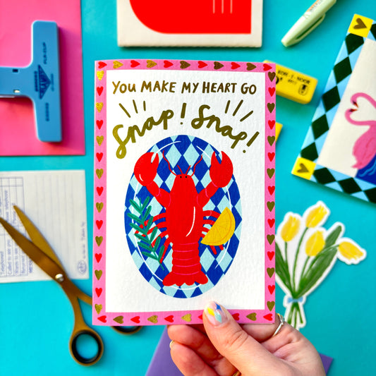You Make My Heart Go Snap Snap Lobster Valentines Day Card | Cute Valentines Day Card