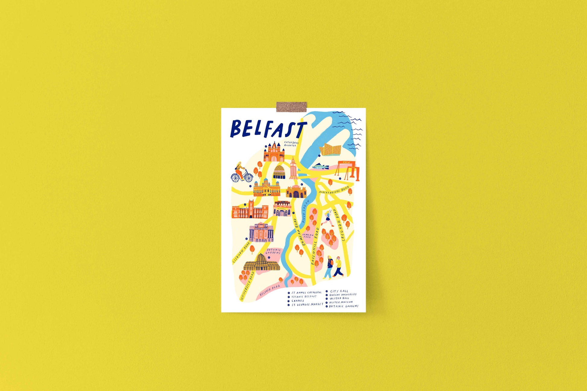Belfast City Illustrated Map Art Print | Belfast art print | Tourism Northern Ireland Irish Local Landmark NI Travel City Break