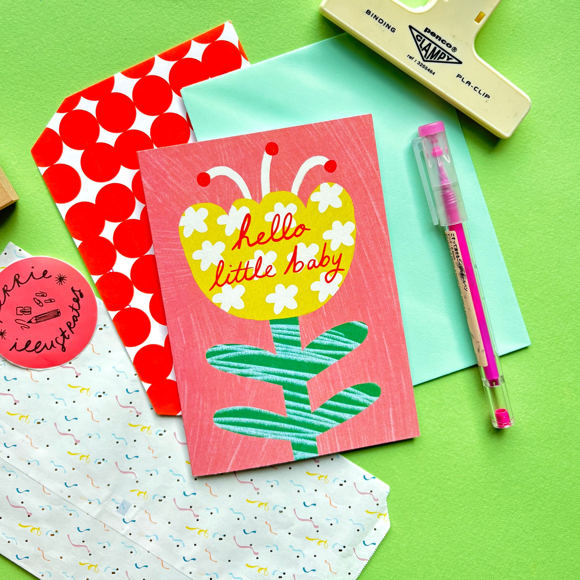 Send a warm and loving hello to the newest bundle of joy with this "Hello Little Baby" greeting card. Featuring a cute, gender-neutral design in soft pastels, this card is perfect for celebrating the arrival of a new baby — whether it's a boy, girl, or a surprise!