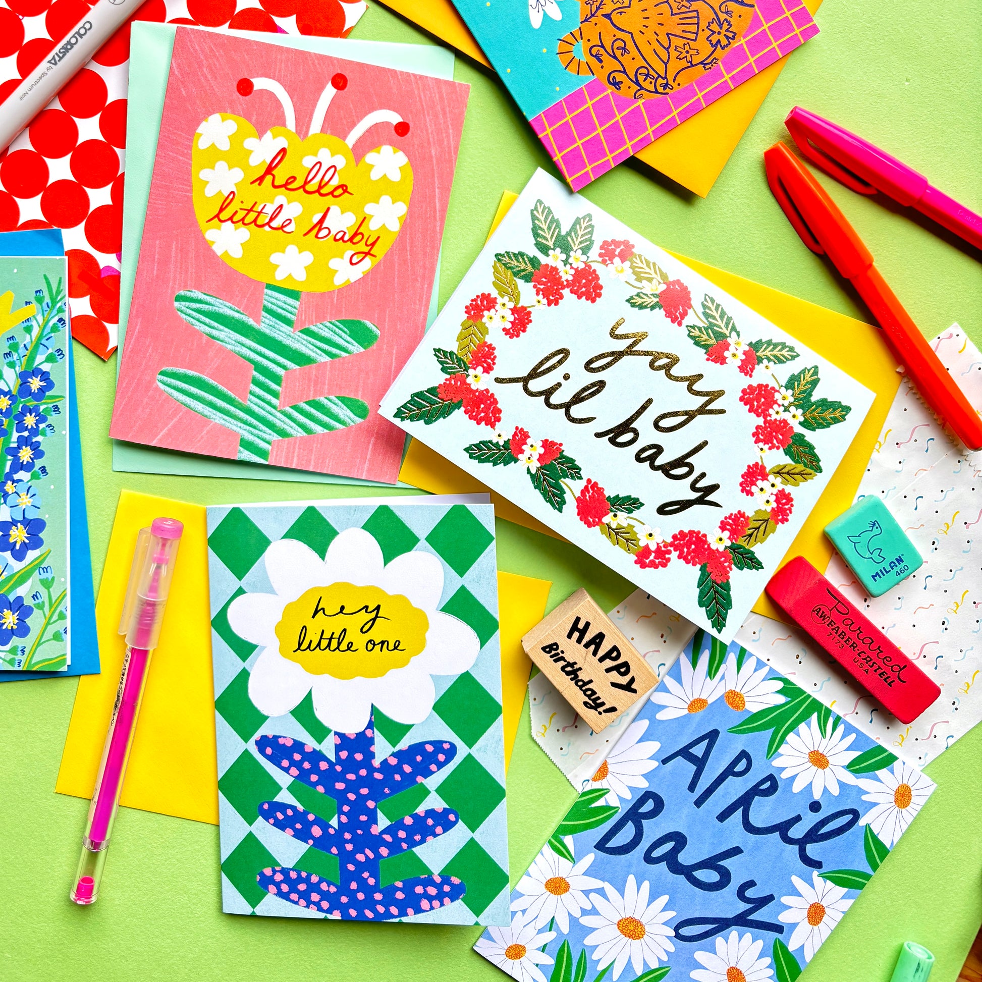 With its quirky patterns and heartfelt message, it’s ideal for baby showers, new birth announcements, or simply sending your love to the growing family.