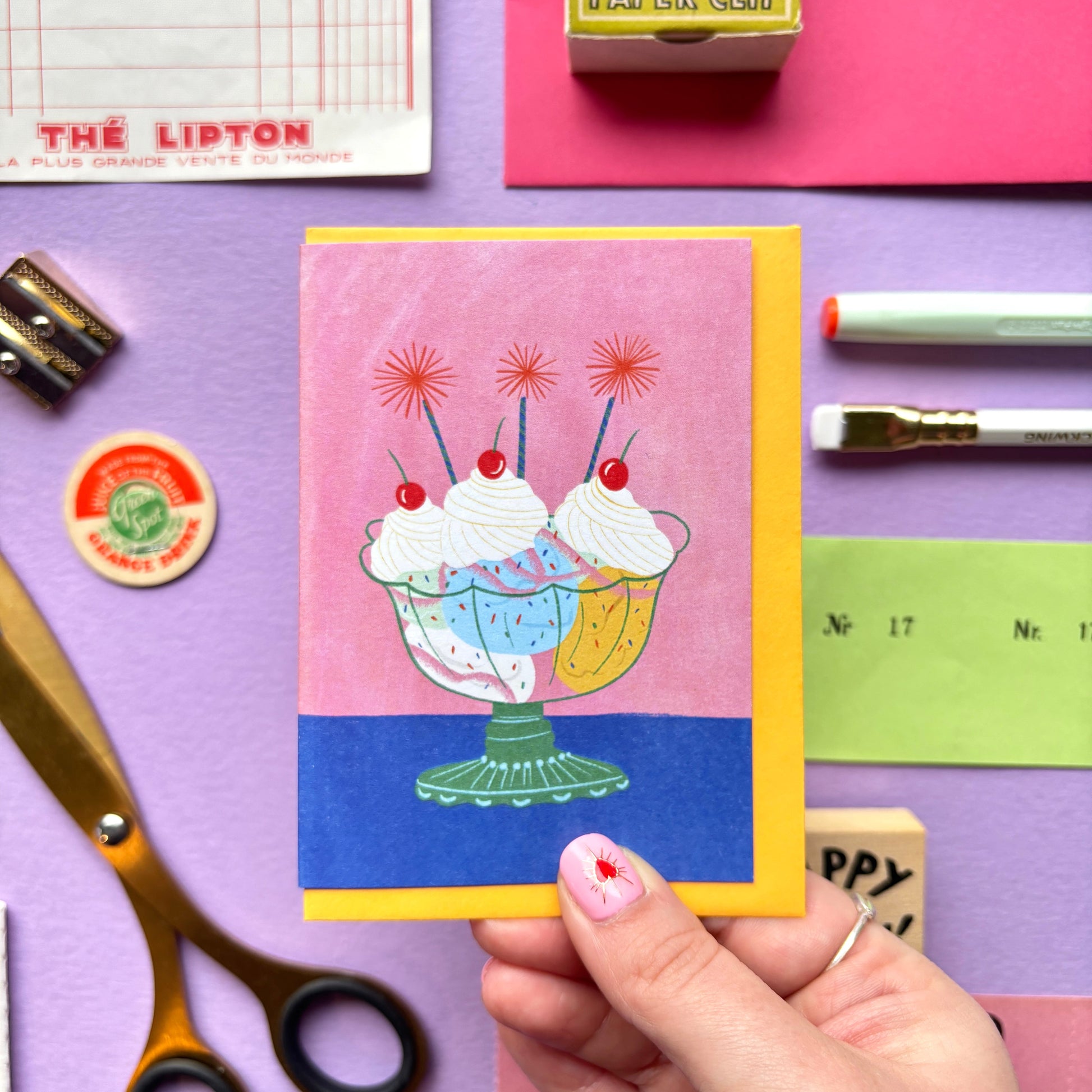 Mini Ice cream Sundae Bowl Birthday Card | Retro Ice cream Sundae Birthday Card | Mini Colourful Birthday Card