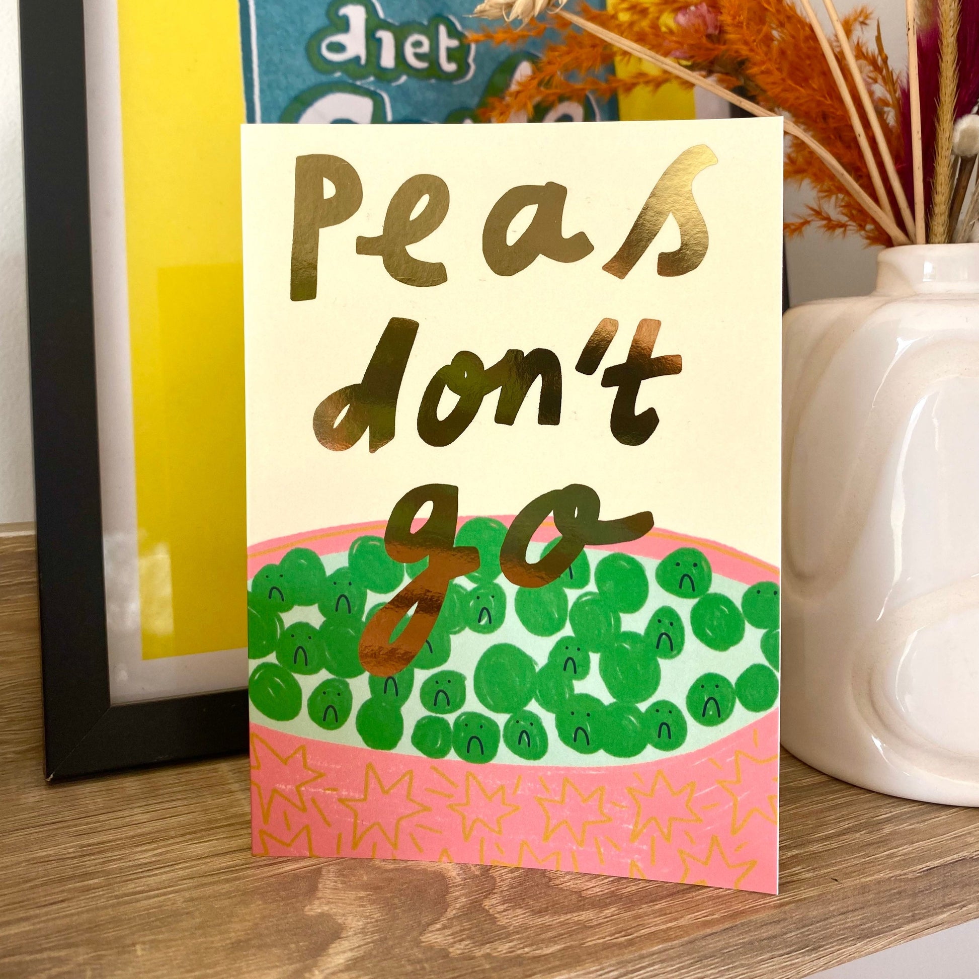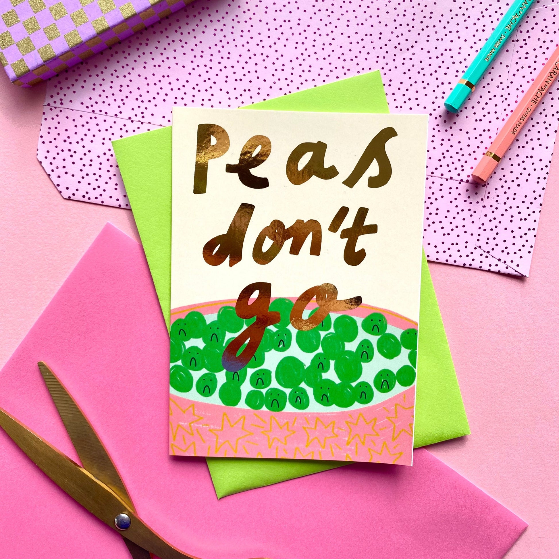 Peas don’t go funny leaving gold foil greeting card | Punny Coworker New Job Retirement Joke Pun