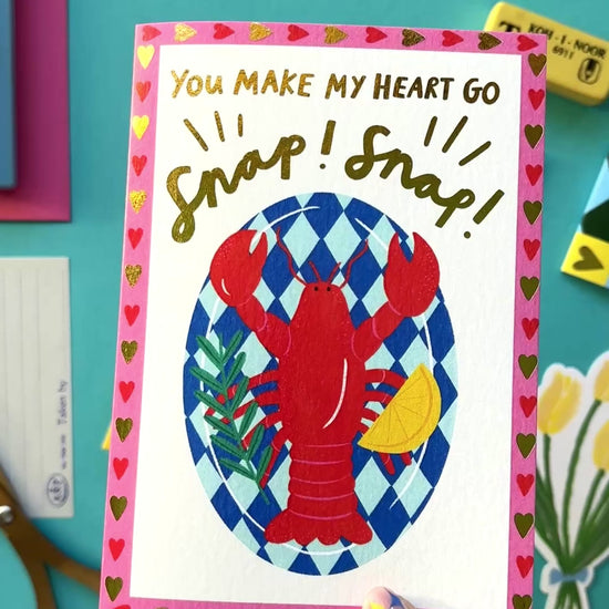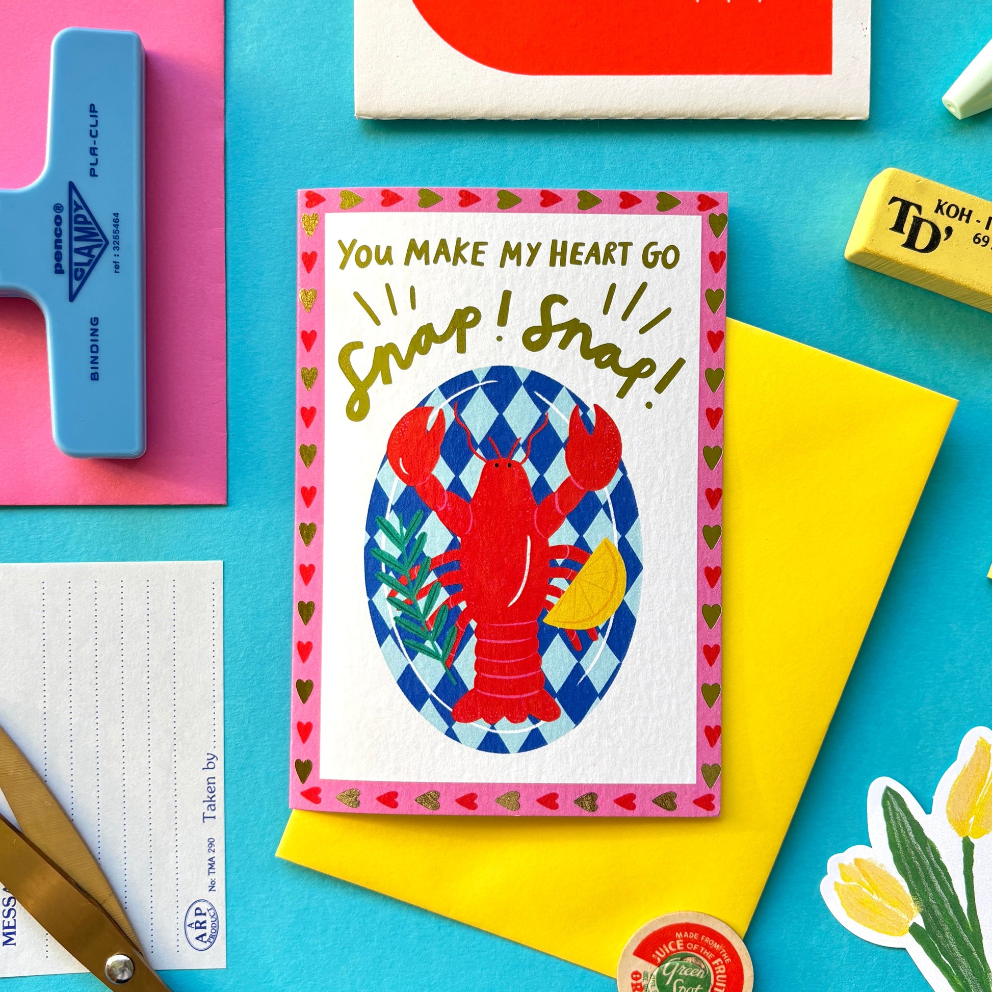 You Make My Heart Go Snap Snap Lobster Valentines Day Card | Cute Valentines Day Card