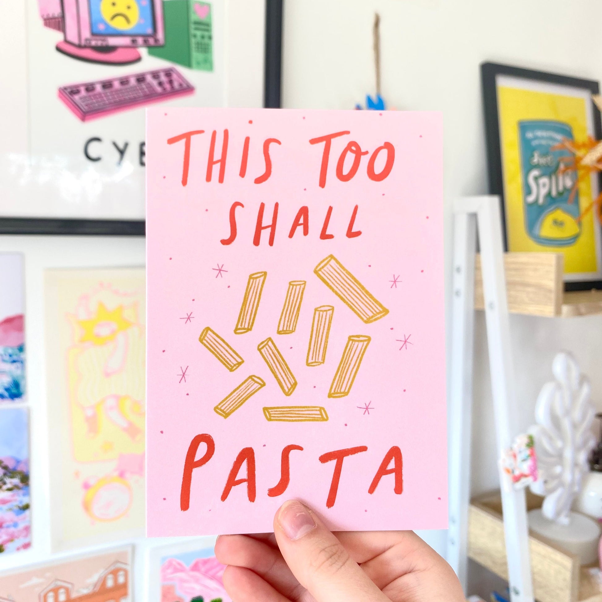 This Too Shall Pasta Friendship Greetings Card | Punny Get Better Well Thoughtful Illness Cheer Up Foodie Chef Pasta Lover