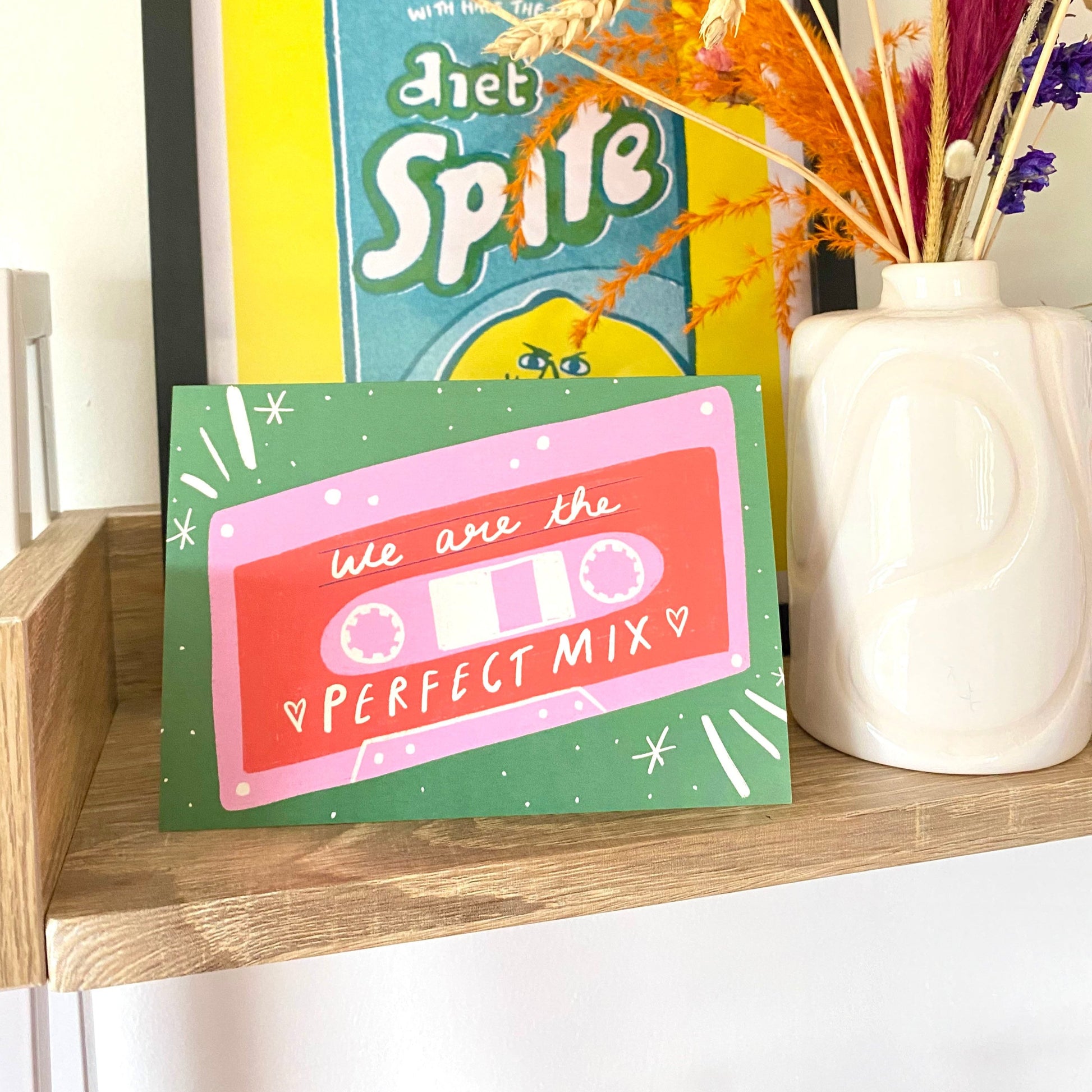 Celebrate your other half with a throwback twist! This We’re The Perfect Mix card features a charming retro mixtape illustration and a pun that hits all the right notes. Whether it’s for Valentine’s Day, an anniversary, or their birthday, it’s the perfect way to say “you + me = magic.”