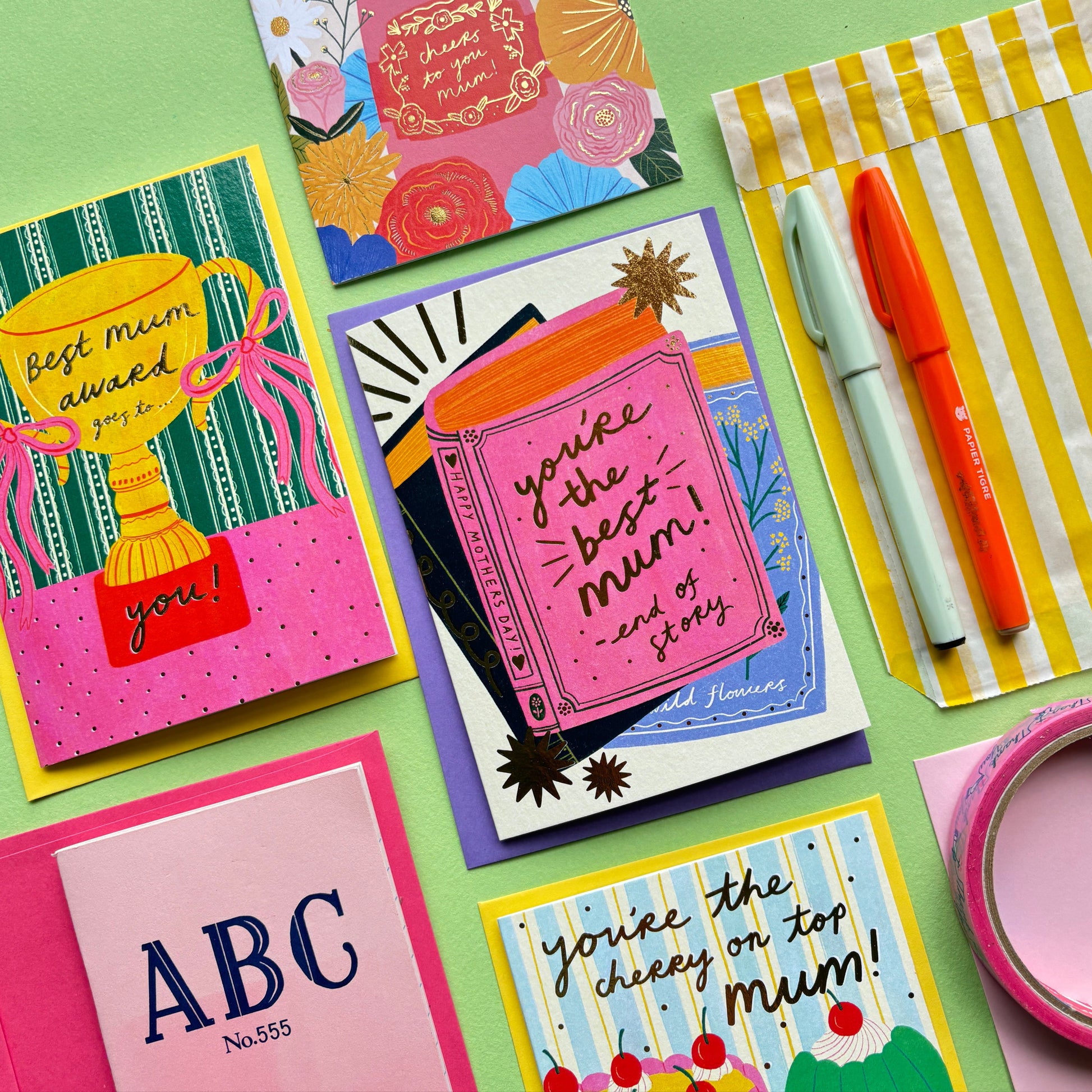 This colourful greetings card is the perfect way to show your mum just how much she means to you - send her the award for World's Best Mum with a shining trophy design. The gold foil shines as bright as she does so is the perfect way to thank her for all she does this Mother's Day.